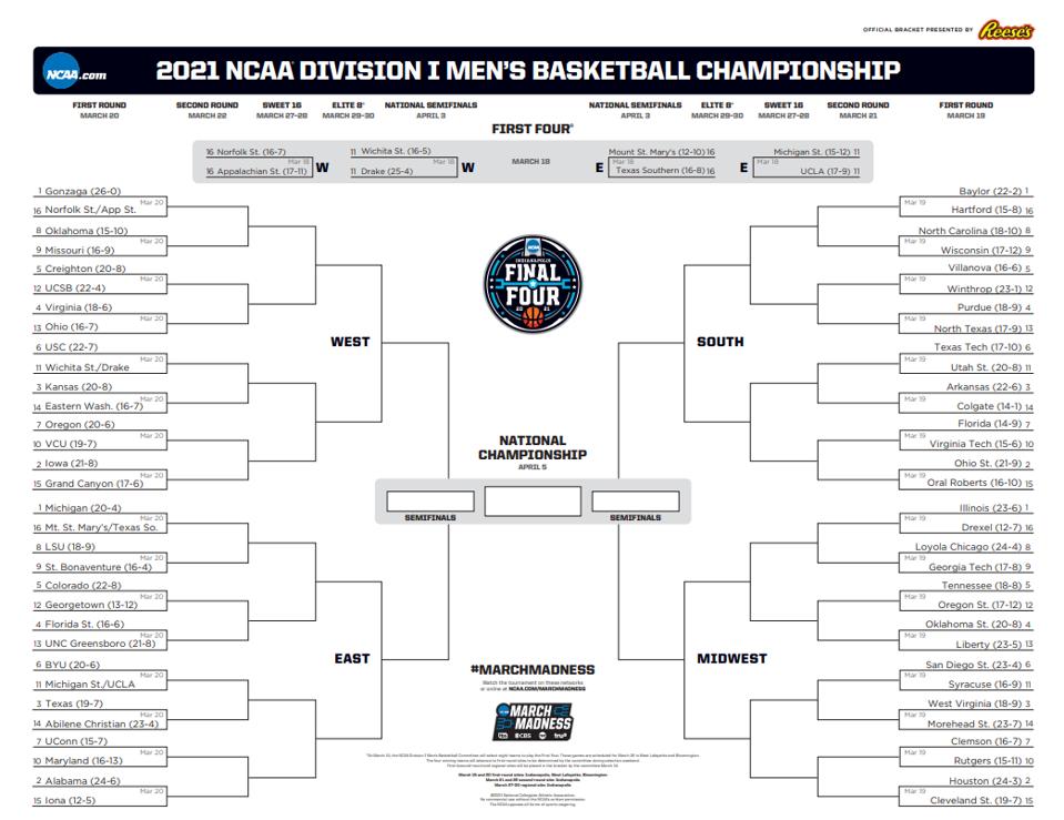 Updated Ncaa Tournament Bracket Following 2021 March Madness Selection Show